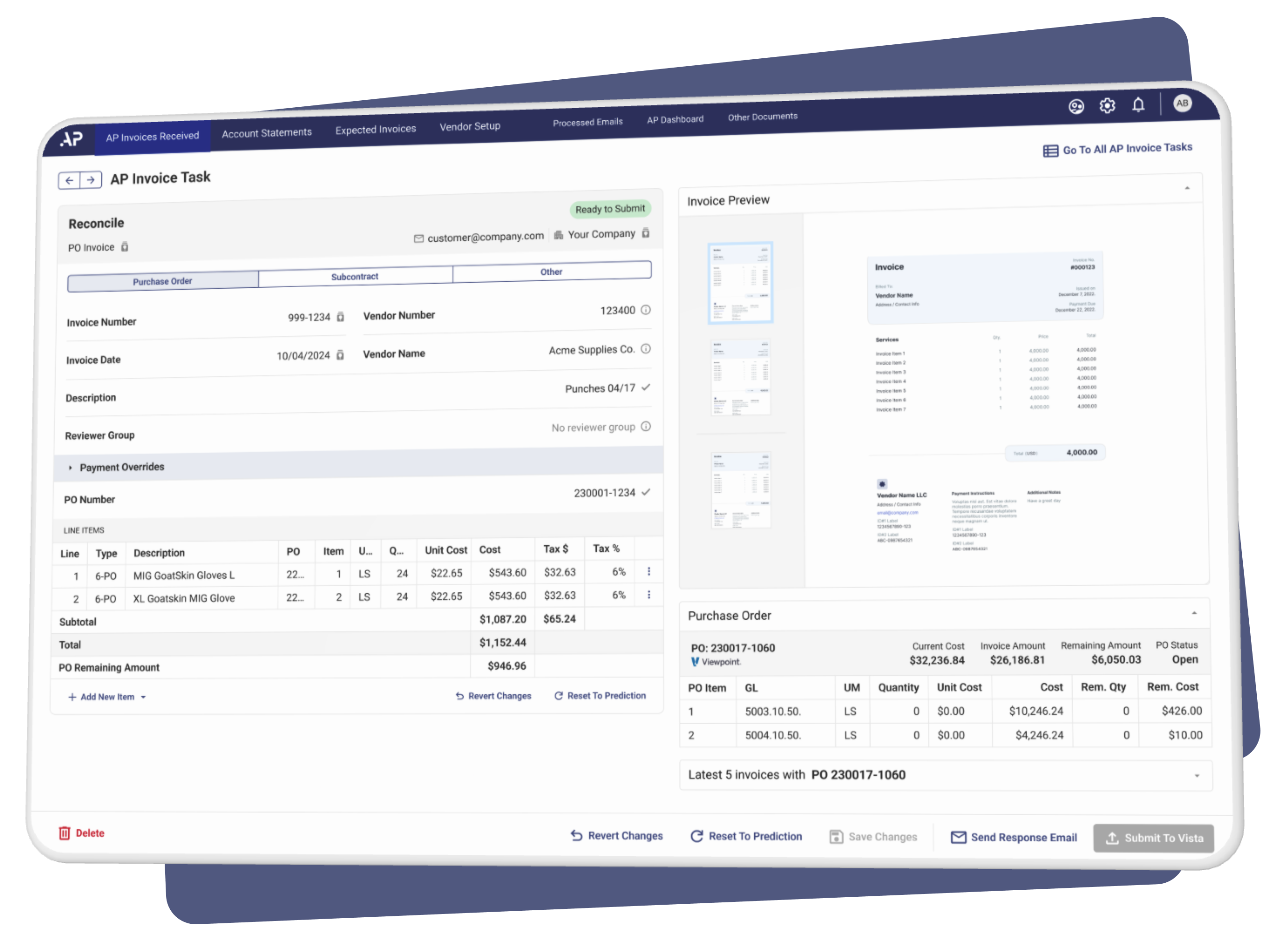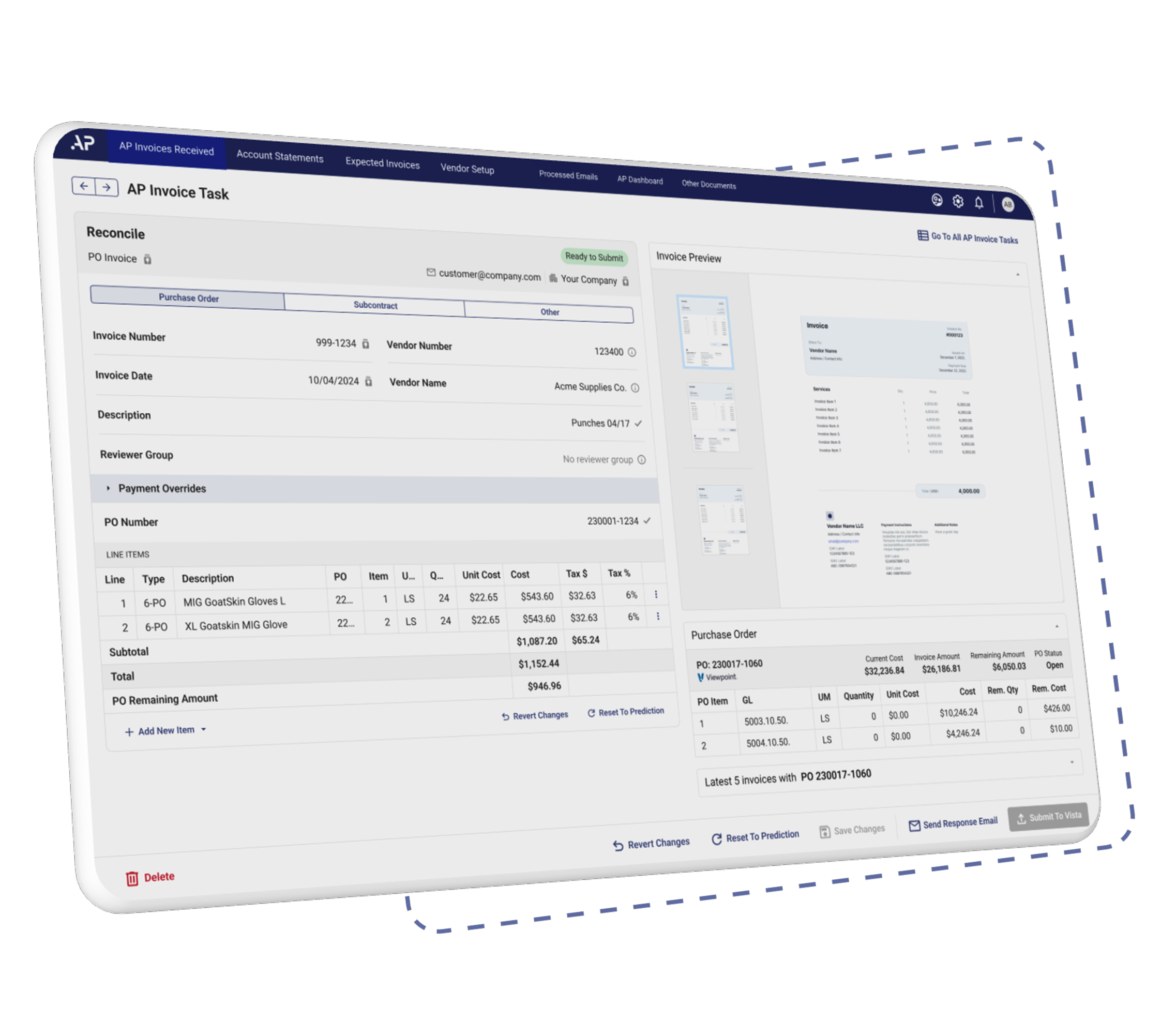 Embrace efficiency and accuracy with our AI-powered automation solution that pioneers first-pass AI integration across your company's AP inbox and say goodbye to manual AP data entry processing